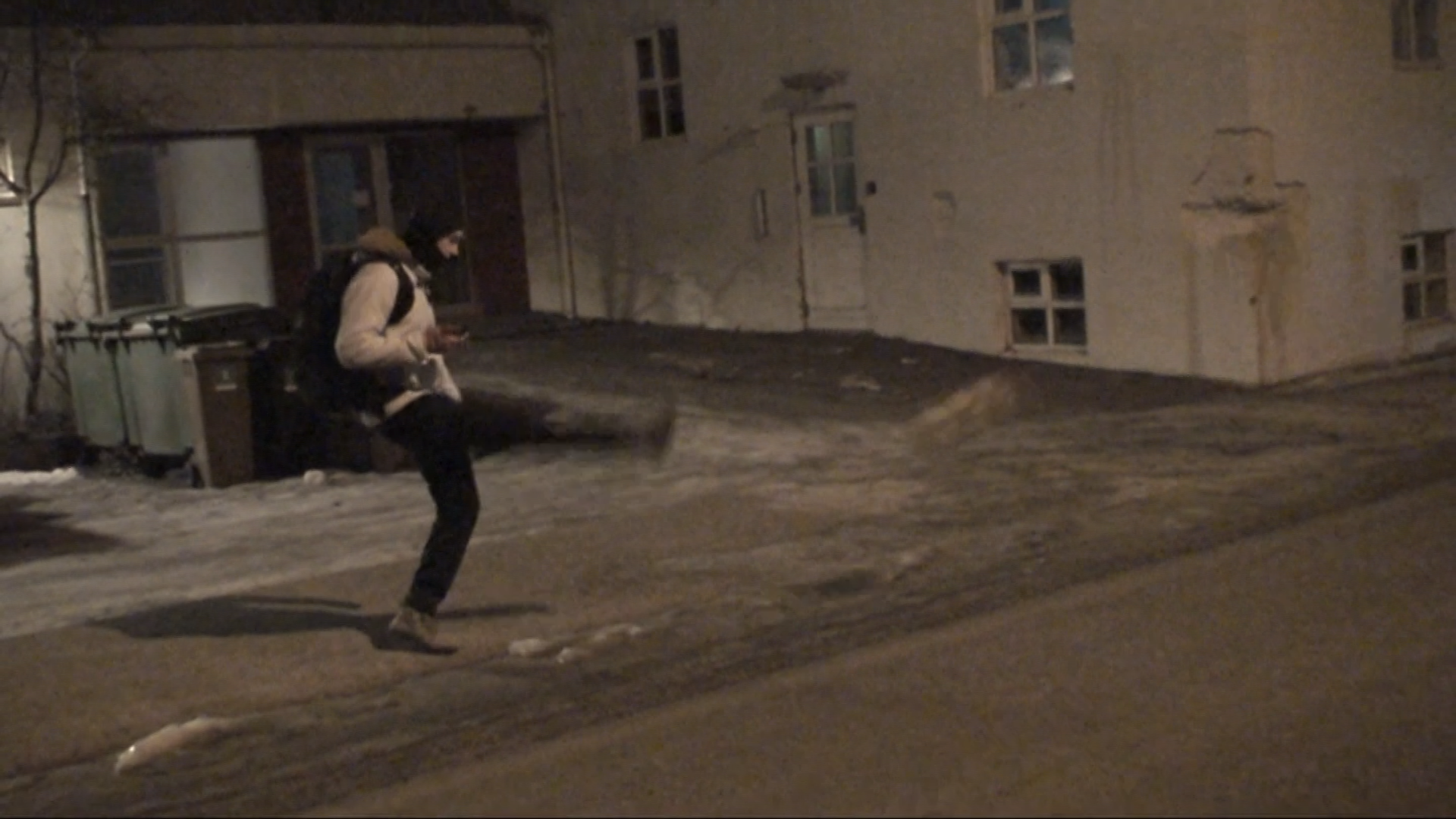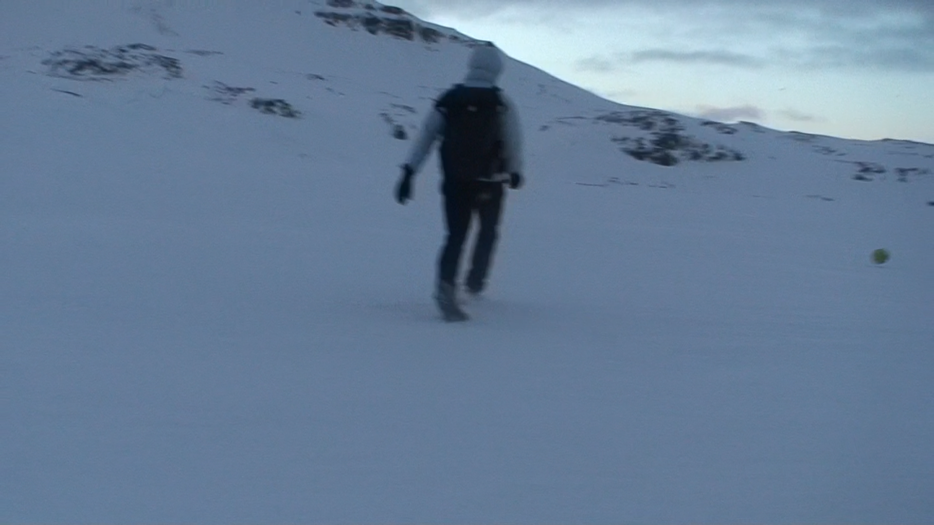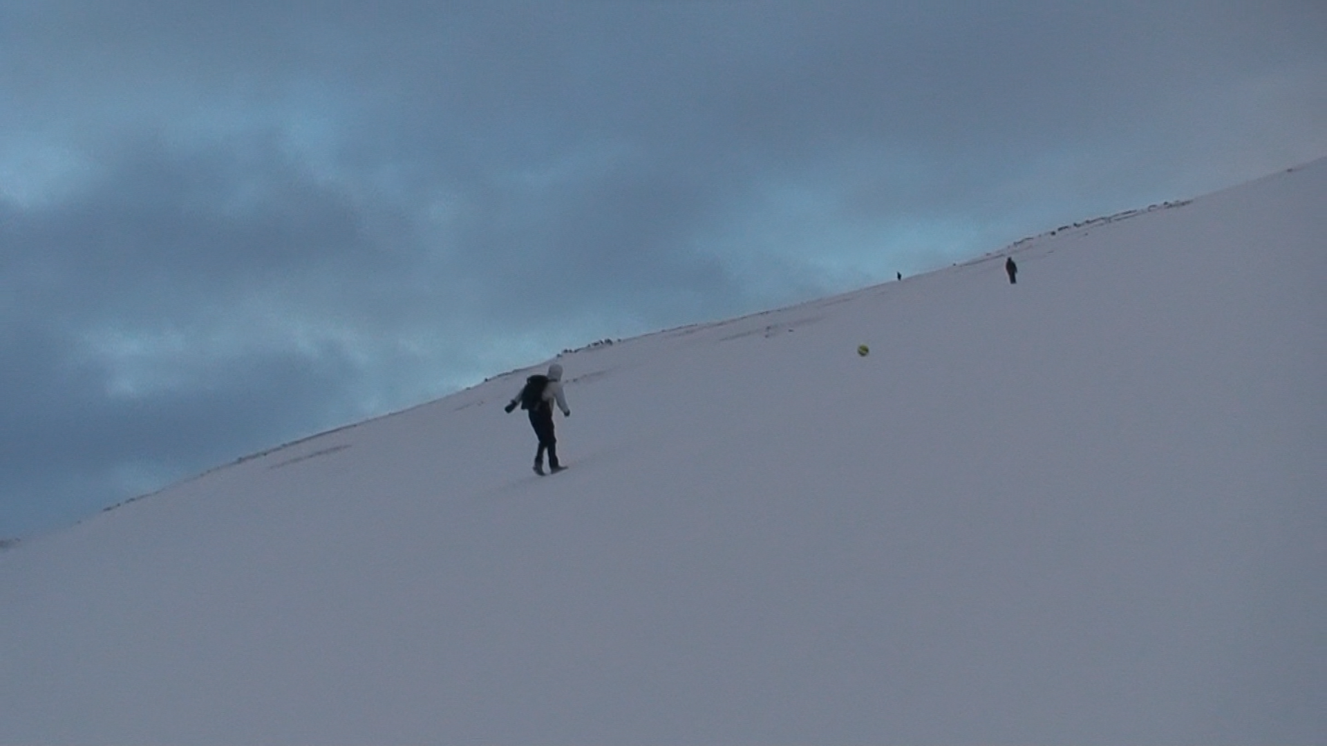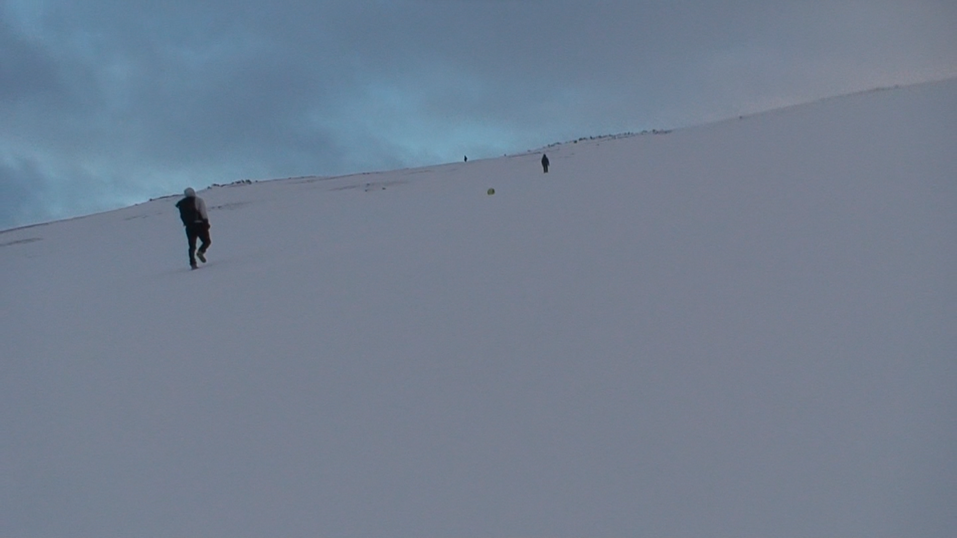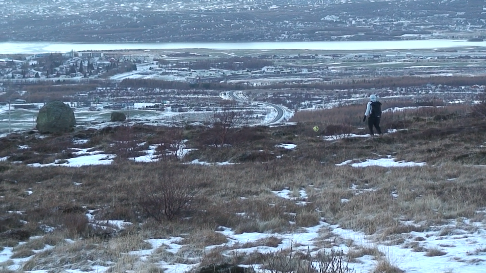 Images and video documentation of a walk between Seyðisfjörður and Egilsstaðir where a football is kicked 2255 times to measure the distance between.